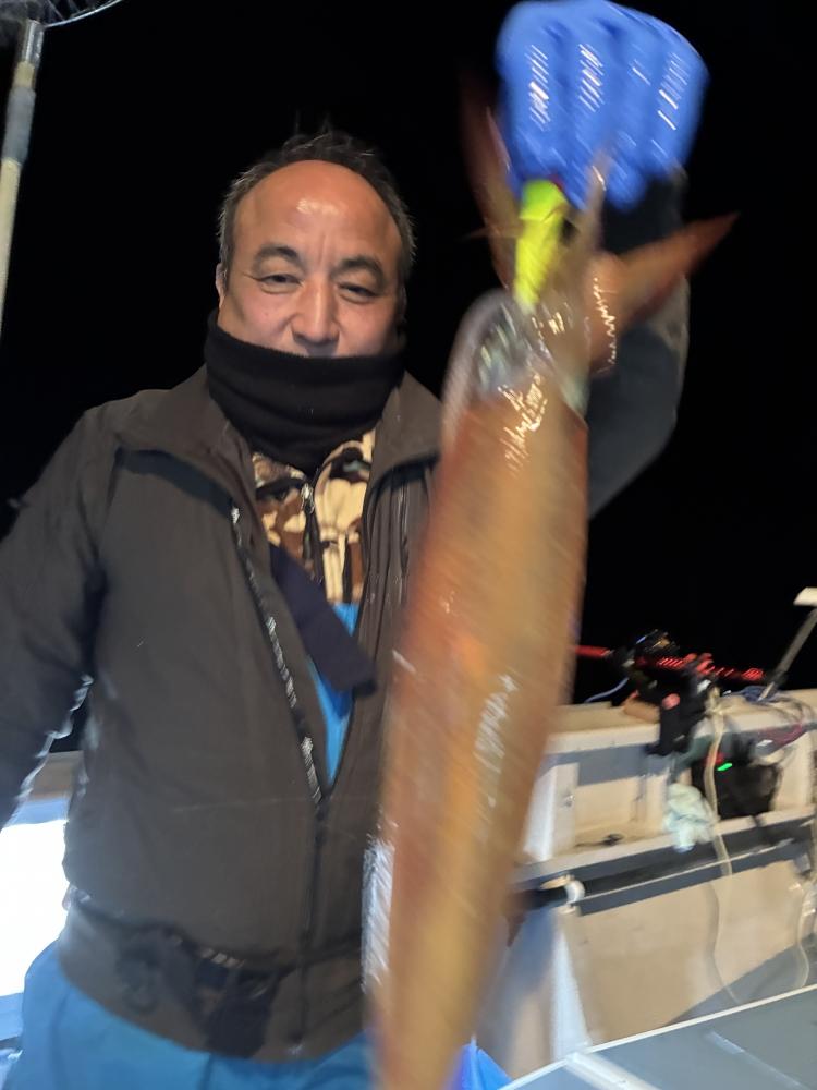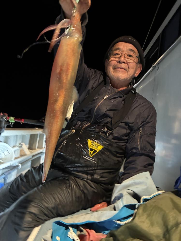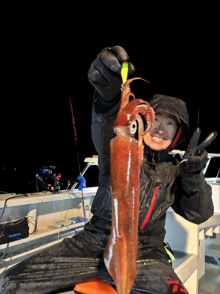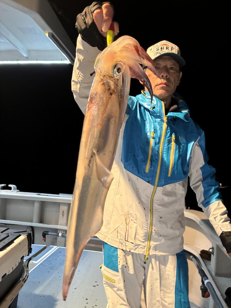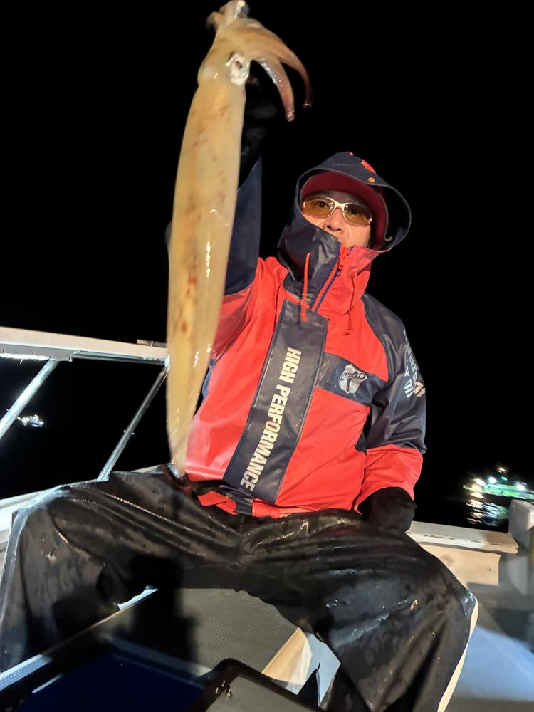 昨夜のイカは最大50㌢、トップ3ハイ。